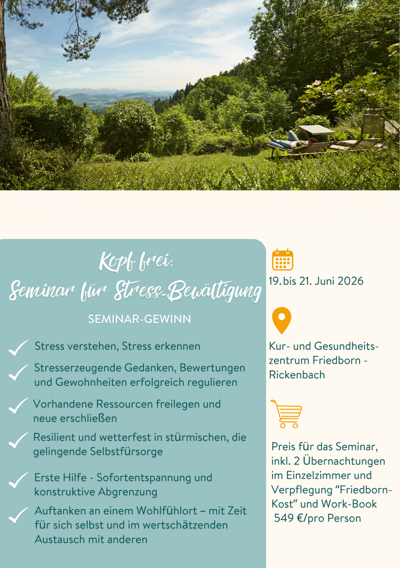 Wie schaffen wir es, dass wir in diesen Momenten bei uns «selbst bleiben»? Wie können wir (wieder) reflektiert, selbstsicher und souverän auf Ereignisse reagieren und klug entscheiden – privat wie beruflich? Gerade in Lebensphasen und Zeiten, in denen das Leben viel von uns abverlangt und wir uns nach Sicherheit und Zufriedenheit sehnen. Es kommt auf diese Fähigkeit an – ich nenne Sie die Fähigkeit des Guten Lebens – und sie unterstützt uns darin, die bestmögliche Version unserer Selbst zu sein: im Denken, im Fühlen und Handeln. Den Weg dorthin zeigen wir Ihnen in unserem Seminar Kopf frei für Stressbewältigung und mehr Zufriedenheit.